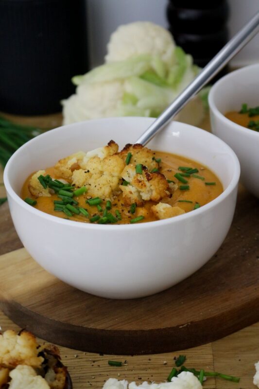 Soti saldžiųjų bulvių sriuba su traškiais žiediniais kopūstais