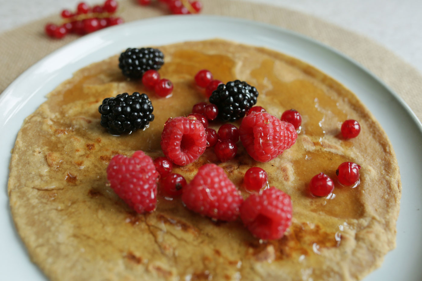 Šie skanūs ploni blyneliai be glitimo, kiaušinių, pieno ir aliejaus yra malonios  tekstūros ir primena lietinius blynus. Jie puikiai laikosi ir laikomi šaldytuve, kitą dieną vis dar yra labai skanūs. Į blynus pridėję uogų ir medaus, organizmą palepinsite naudingais prebiotikais – galėsite drąsiai suvalgyti kelis blynus.
