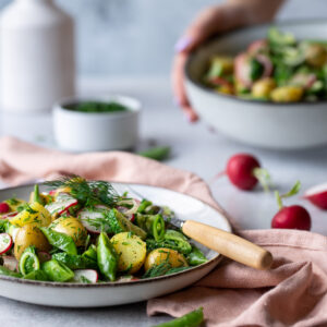 - saujos smulkiai supjaustytų šviežių prieskoninių žolelių (pavyzdžiui, puikiai tinka švieži krapai, petražolės arba čiobreliai)