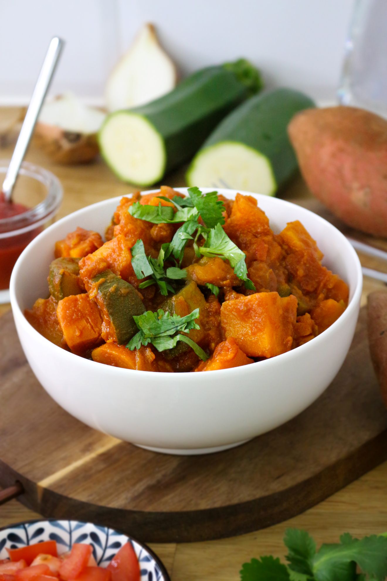 Šis šildantis troškinys – tikras jaukumo maistas vienoje lėkštėje. Šiame recepte saldžiosios bulvės ir cukinijos kartu sukuria gardų, kepenims palankų patiekalą, kuriuo galima mėgautis atskirai arba kaip garnyru prie šviežių salotų. Tai labai paprastas vieno puodo patiekalas – tereikia sudėti ingredientus į puodą troškinti ir po 15-20 min. jau galima patiekti. Garantuotas sotus maistas ir sveikatos pastiprinimas! Saldžiosios bulvės padeda nuraminti įtemptas kepenis ir palaiko hormonų pusiausvyrą. Kita vertus, cukinija rūpinasi žarnyno sveikata, padeda šalinti ligų sukėlėjus ir skatina maistinių medžiagų įsisavinimą. Taigi, jei pasiilgote maistingo patiekalo, šį sotų troškinį tikrai verta išbandyti! Įsitikinkite patys: