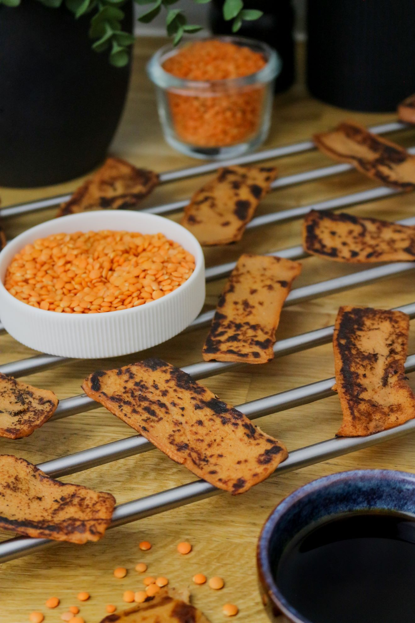 Tikriausiai pastebėjote, kad prekybos centrų lentynose esančios augalinės mėsos alternatyvos yra nelabai patrauklios sudėties. Galbūt net susimąstėte, ar neįmanoma būtų kitaip? Džiaugiamės galėdami pasakyti, kad taip! Įmanoma! Jei ieškote gardaus priedo prie sumuštinio, salotų, picos ar tiesiog užkandžio, tikrai verta išbandyti šią lęšių „šoninę”. Tai gardūs gabalėliai, pagaminti iš 100 % lęšių, suteikiantys išties turtingą skonį. Jokių priedų ar skonio stipriklių. Pats receptas paprastas, o rezultatas tikrai skanus. Be to, lęšių „šoninė” skani ir karšta, ir šalta, todėl ją galima naudoti įvairiai. Įsitikinkite patys – receptas prieš jus! 😉